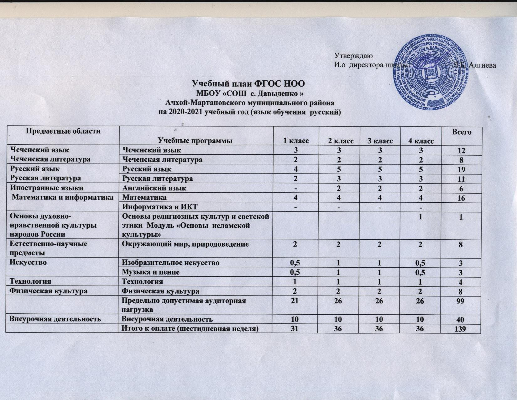 Отчет муниципального бюджетного общеобразовательного учреждения «Средняя общеобразовательная школа с.Давыденко» об исполнении предписания Министерства образования и науки Чеченской Республики