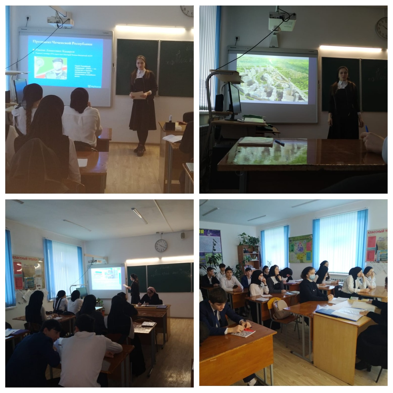 27 января Лидер ЕДЮО МБОУ "СОШТс Давыденко"Хацаева Иман ученица 10 класса провела классный час в 10 классе на тему "Мой край-моя Чечня"