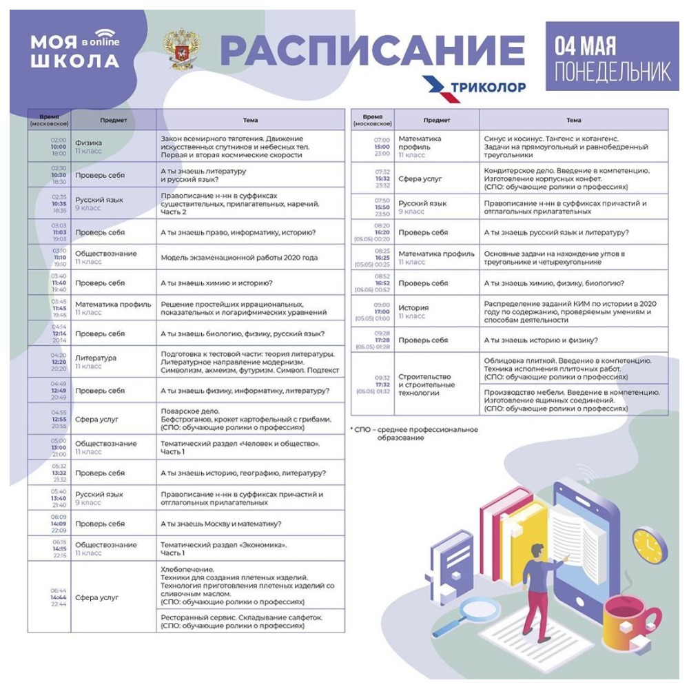 ⚡️Друзья! Готово расписание трансляций видеоуроков на образовательном телеканале «МОЯ ШКОЛА в online» на «Триколор»!⠀