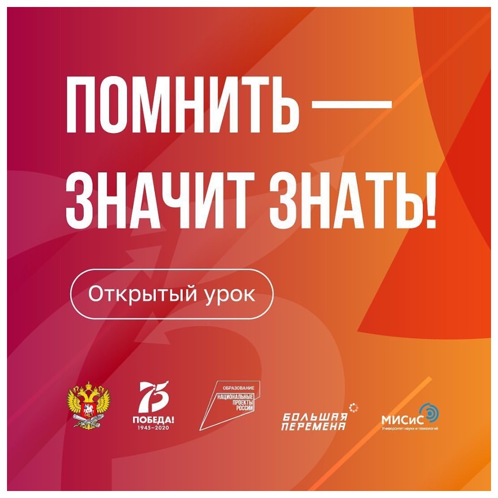 🚩 В Год памяти и славы урок для старшеклассников посвятят 75-летию Великой Победы. Гостями в студии станут Министр просвещения Сергей Кравцов, историк Александр Звягинцев, активисты Российского движения школьников, Юнармии, движения «Волонтёры Победы», патриотических клубов, а также активные участники Всероссийского конкурса «Большая перемена» @peremenacontest