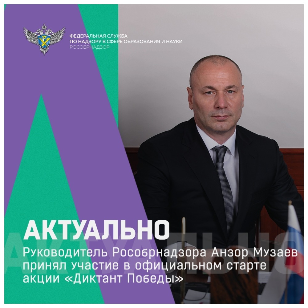 Руководитель Рособрнадзора Анзор Музаев принял участие в официальном старте акции «Диктант Победы».⠀