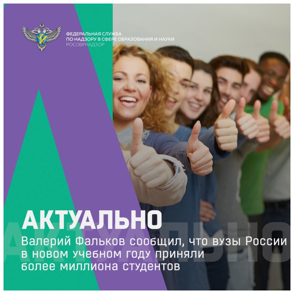 Министр науки и высшего образования РФ Валерий Фальков сообщил, что вузы России в новом учебном году приняли более миллиона студентов