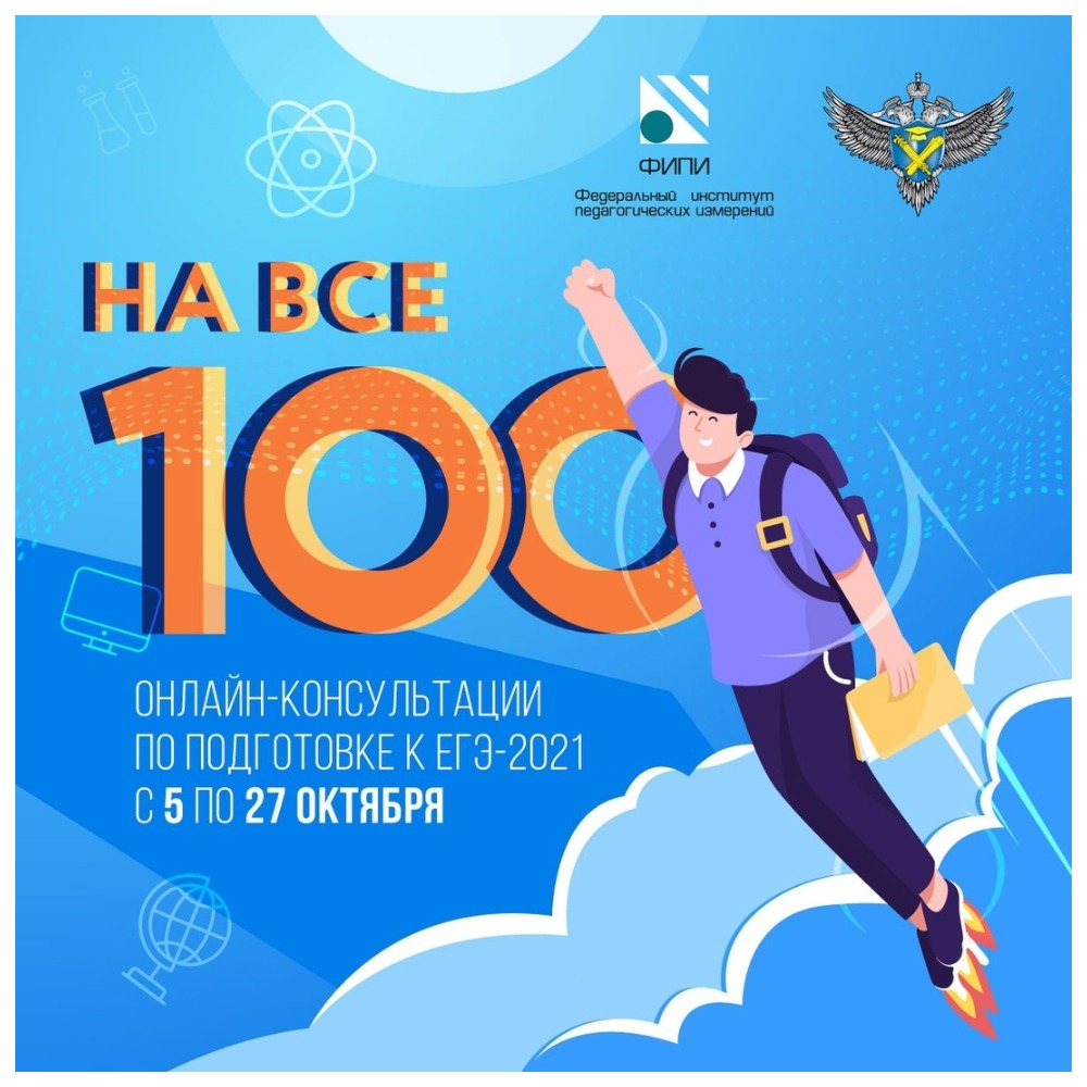 01.10.2020В октябре Рособрнадзор проведет онлайн-консультации для выпускников «На все 100!» от разработчиков экзаменационных материалов ЕГЭ.⠀В ходе консультаций все участники ЕГЭ и педагоги смогут получить информацию об экзаменационных материалах ЕГЭ 2021 года: