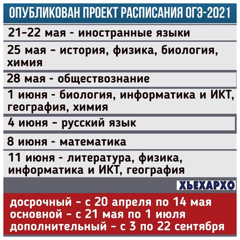 Министерство просвещения опубликовало проект расписания Основного государственного экзамена (ОГЭ) для выпускников девятых классов. Он также пройдет в три этапа: досрочный - с 20 апреля по 14 мая, с 21 мая по 1 июля - основной, и дополнительный - с 3 по 22 сентября.