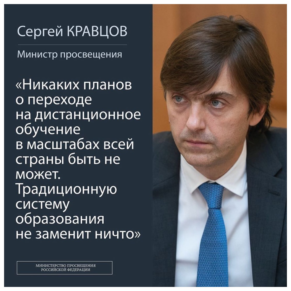 Сергей кравцов: "Никаких планов о переходе на дистанционное обучение в масштабах всей страны быть не может"