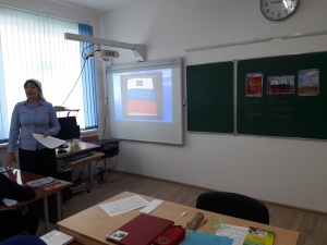 В ходе классного часа учащиеся вспомнили главные символы государства, познакомились с основным законом-Конституцией России, обсудили права и обязанности школьников.