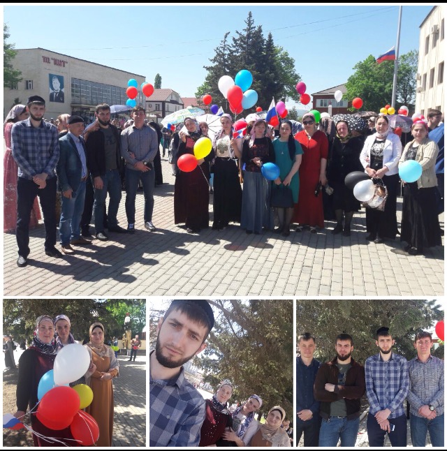 на площади в Ачхой-Мартановском районе МБОУ "СОШ с. Давыденко" приняла активное участие в параде посвященной 1 маю День весны и труда