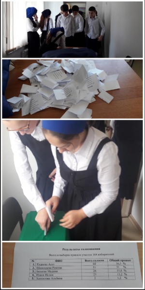 25 сентября в школе прошли выборы президента школы. По окончании выборов были подведены итоги. Из пяти кандидато, больше всего голосов набрала Кедиева Асет из 9б класса. С чем мы ее и поздравляем!!!
