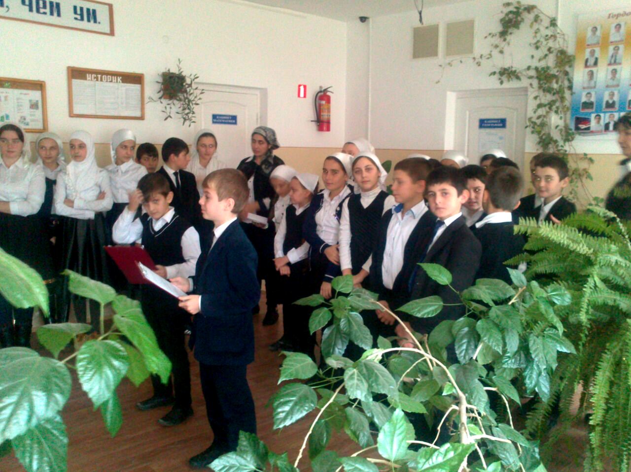 09.12.2014В целях патриотического воспитания учащихся, развития интереса к истории России и ЧР, сохранения памяти о погибших и ныне живущих Героях нашей страны в МБОУ « СОШ с. Давыденко» с 5 по 10 декабря прошли мероприятия, приуроченные Дню героев Отечества.Заключительное общешкольное мероприятие « Живет среди нас Герой» проведено 10 .12.14г.